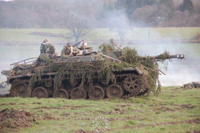 66 German soldiers with US M4A2(76)W Sherman in the background